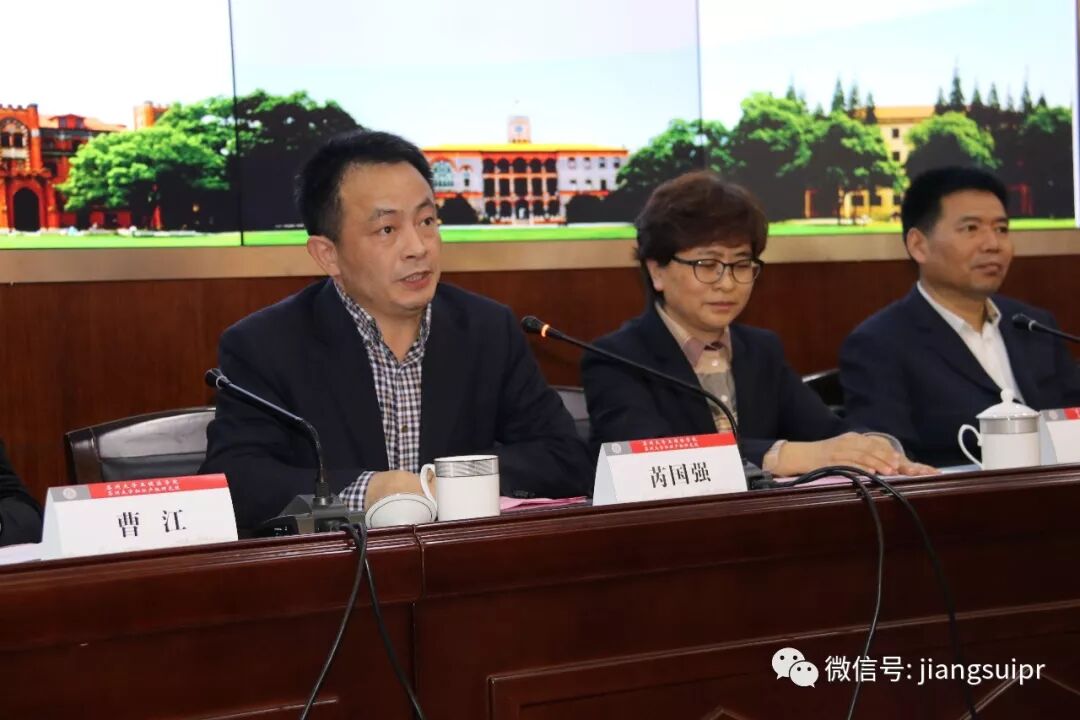 江苏省知识产权局支苏平局长与江苏省教育厅洪流副厅长共同为“江苏省知识产权(苏州大学)研究院”揭牌,江苏省知识产权(苏州大学)研究院正式挂牌。苏州大学党委常委、纪委书记芮国强代表学校讲话,芮书记指出,省级知识产权研究院正式落户苏大,既是上级部门给予关心、大力支持的结果,也是知识产权研究院不断进取、努力创新的回报,芮书记表示苏州大学将不负省级主管部门的信任,整合高校与政府的优势资源,在已有的建设基础上,拓展服务模式,打造专业化程度更高更强的知识产权平台,建设好省级研究院。