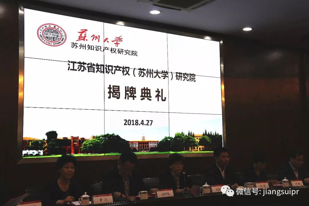 日前,江苏省知识产权局、江苏省教育厅联合批复,同意在苏州大学建设省级知识产权研究院,定名为“江苏省知识产权(苏州大学)研究院”。4月27日下午,江苏省知识产权(苏州大学)研究院揭牌典礼在苏州大学王健法学院东吴大讲堂隆重举行.