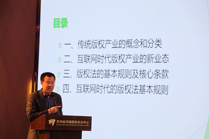 在嘉宾发言环节,5位特邀嘉宾分别从版权管理、创造、运营和保护等方面进行了全新解读,精彩纷呈。华东政法大学丛立先教授主讲《互联网时代版权法基本规则的调整》,为网络版权发展和文化繁荣提出了开创性探索;上海冠勇信息科技有限公司创始人兼CEO吴冠勇先生主讲《数据驱动的版权贸易与保护》,冠勇科技作为全球版权贸易与保护的领军企业,用大量事例说明技术的发展迭代为版权保护与运营提供了极大便利;金山办公软件副总裁肖玢女士主讲《版权保护让软件产业更具创造力》,WPS是我国自主知识产权的民族软件代表,是中国政府应用最广泛的办公软件之一,肖总深入浅出,让我们看到了中国软件版权产业的希望和未来;视觉中国集团副总裁张宏麟先生主讲《中国图像行业发展与保护之路》,视觉中国目前是我国最大的视觉内容版权互联网交易平台,张总高屋建瓴,让我们在精美且历史底蕴丰厚的图片宝库中明晰了图像行业发展端倪;咪咕视讯科技有限公司执行副总裁单磊先生主讲《沉浸式sportainment--场景化的版权开发》,畅谈融合共生的版权产业在互联网时代的机遇和挑战。