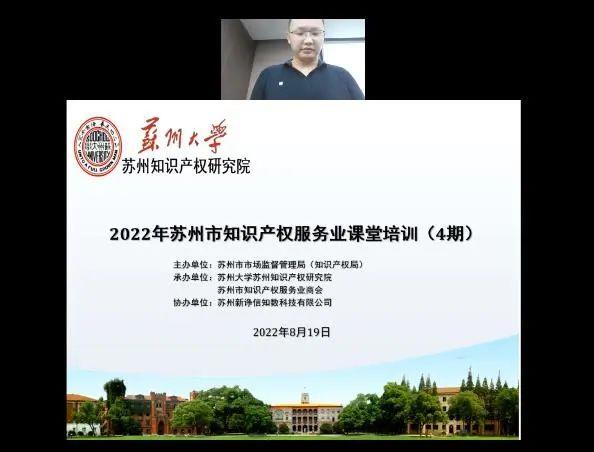 2022年8月19日下午,在苏州市市场监督管理局(知识产权局)的指导与支持下,由苏州大学苏州知识产权研究院和苏州市知识产权服务业商会承办,苏州新诤信知数科技有限公司协办的的苏州市知识产权服务业课堂培训第四期成功举办。