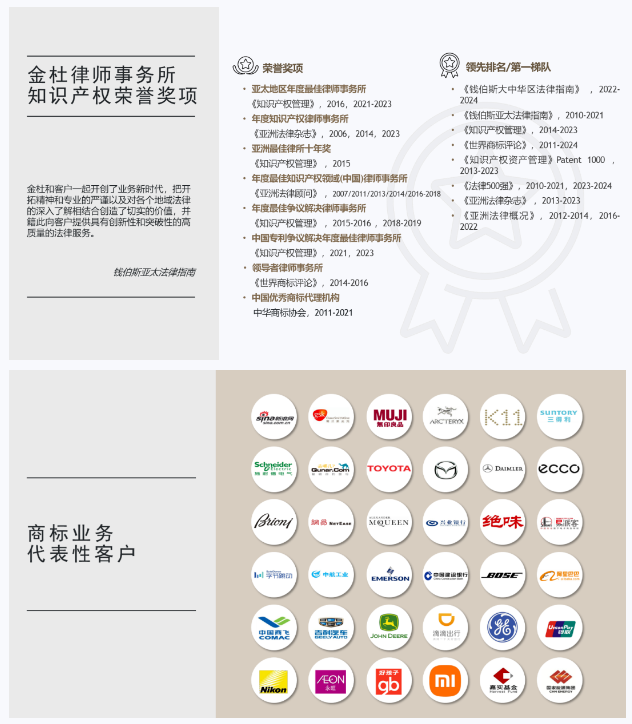 金杜于1993年成立,是中国最早成立的合伙制律师事务所之一,也是率先在海外设立办公室的中国律所之一。自成立伊始,金杜一直在中国法律市场中发挥着重要引领作用,为推动中国法治进步贡献力量,为跨国公司在华投资和中国公司把握全球发展机遇提供专业的法律服务。在中国,金杜拥有490多名合伙人和2000多名专业人员,办公室分布于北京、长春、成都、重庆、广州、海口、杭州、济南、南京、青岛、三亚、上海、上海临港、深圳、苏州、无锡、香港特别行政区这17个重要商业中心城市,能够为客户提供在中国及辐射全球的全方位、跨法域、综合性、一站式的法律服务和最佳商业解决方案,确保客户在开展业务的任何地域均能获得同样高品质且具商业化和创新性的法律服务。