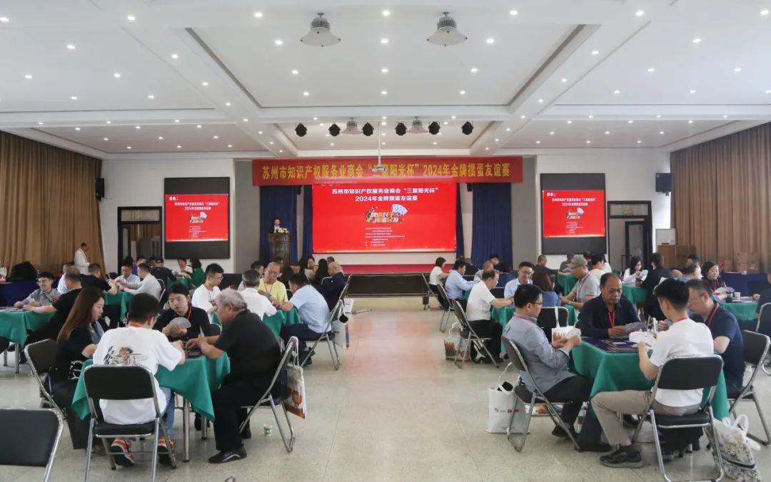 5月31日下午,由苏州市知识产权服务业商会、苏州大学苏州知识产权研究院主办,北京三聚阳光知识产权集团冠名,北京三聚阳光知识产权代理有限公司苏州分公司、苏州市民营科技促进会协办的苏州市知识产权服务业商会“三聚阳光杯”2024年金牌掼蛋友谊赛在东吴智力运动基地成功举办。商会机构代表、企业代表及社会各界掼蛋爱好者近80人报名参加了本次比赛。苏州大学王健法学院党委书记孙宁华、苏州市市场监督管理局知识产权服务处处长程晶晶、北京三聚阳光知识产权集团董事长张杰、苏州市知识产权服务业商会副会长/苏州大学苏州知识产权研究院执行院长肖丽娟等领导作为嘉宾出席本次活动。活动由苏州市知识产权服务业商会秘书长孙翔主持。
