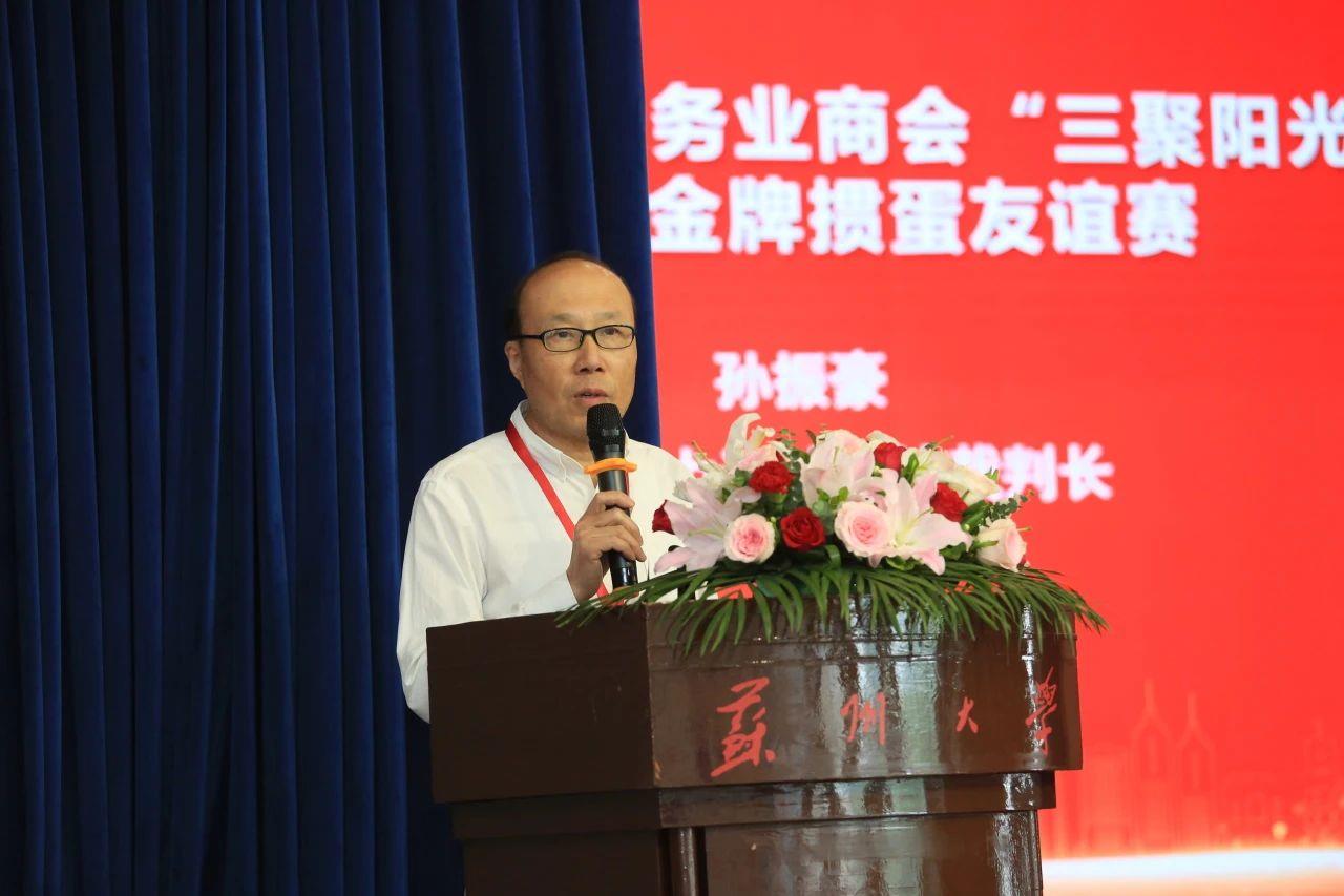 苏州市知识产权服务业商会副会长/苏州大学苏州知识产权研究院执行院长肖丽娟致辞,肖院长首先对北京三聚阳光知识产权集团的大力支持表示诚挚的感谢。她表示,金牌掼蛋友谊赛作为商会每年举办的特色活动,不仅是一次竞技比赛,更是一场文化与友谊交流的盛会,作为商会的秘书处,一定会发挥好桥梁与纽带的作用。最后,她希望参赛选手能在轻松愉快的比赛氛围中获得良好的成绩,加强交流,增进友谊,并预祝本次金牌掼蛋友谊赛圆满成功。