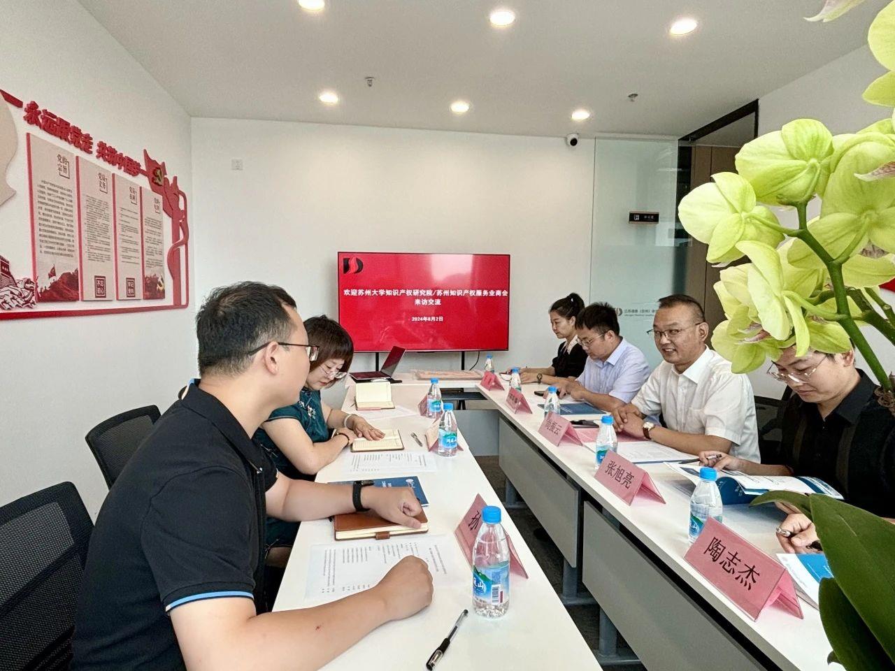 2024年8月2日上午,苏州市知识产权服务业商会新会员单位授牌仪式在江苏德善(苏州)律师事务所举行。苏州大学苏州知识产权研究院执行院长/苏州市知识产权服务业商会副会长肖丽娟、江苏德善(苏州)律师事务所主任尚振云等相关人员参加了授牌仪式与座谈交流。交流活动由苏州大学苏州知识产权研究院办公室主任/苏州市知识产权服务业商会秘书长孙翔主持。